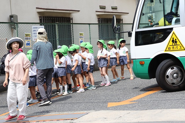 普段バス通園ではない子は、バスに乗るのも久びりだったり、初めてのバス。