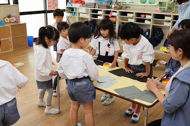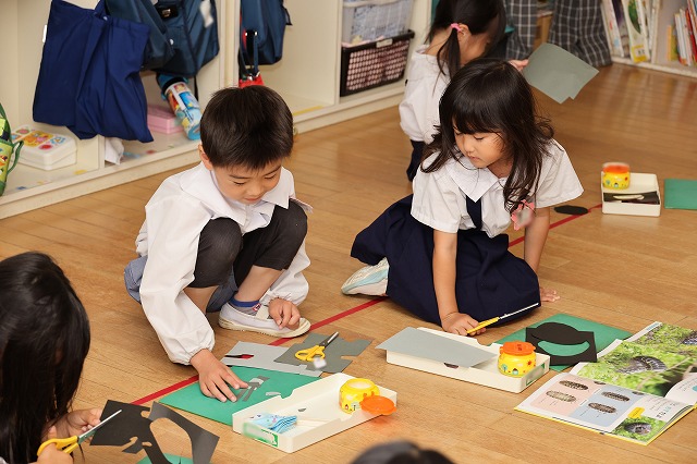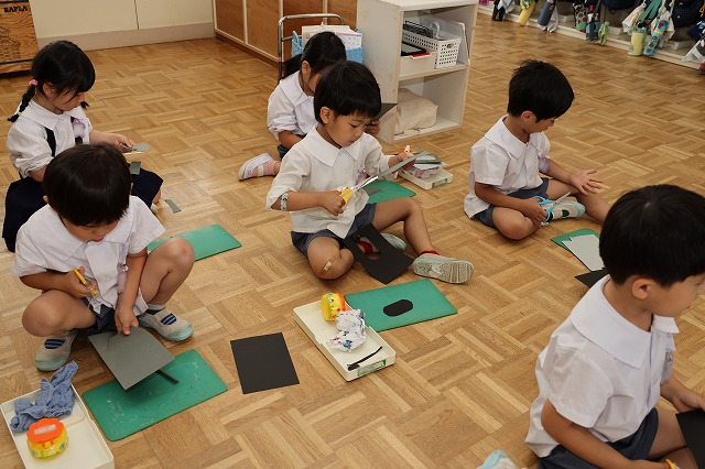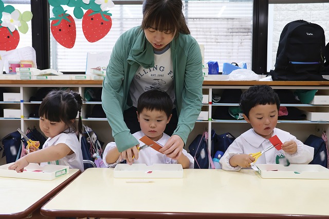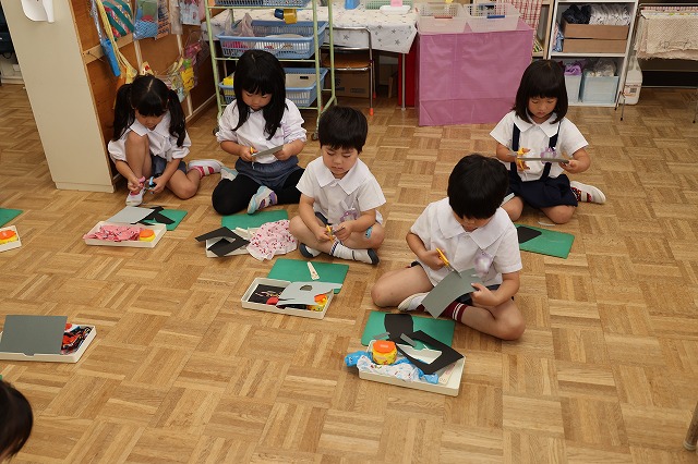 年少組さんが初めてはさみを使って製作を楽しみました。
