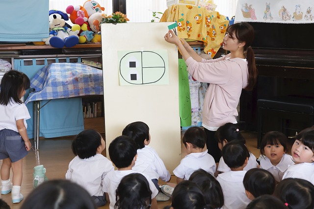 誕生日会の後は、先生たちによるペープサート「へんしんトンネル」