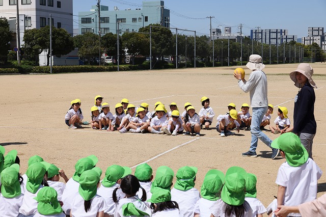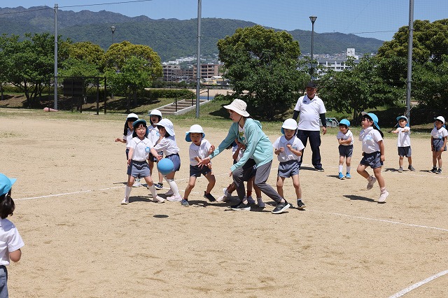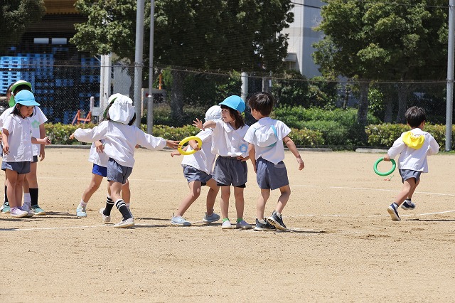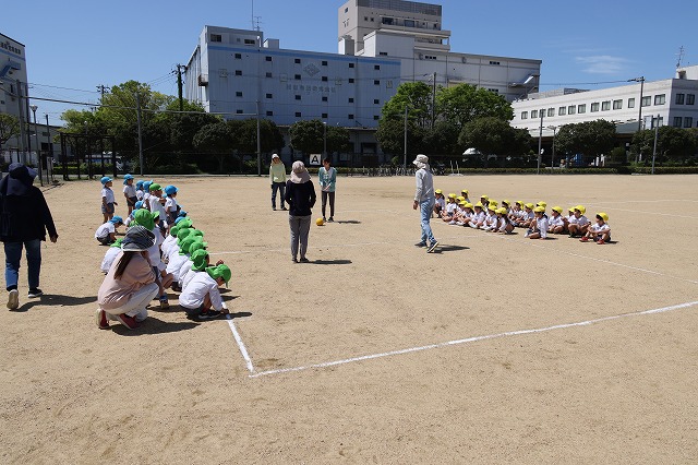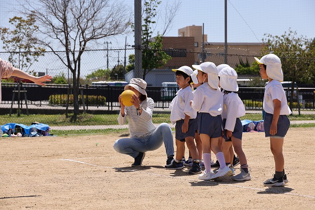 本来ならば、幼稚園の園庭でドッチボール大会やリレーなどもできるのですが、今年は、新園舎の工事の為園庭が半分ほどになっているため、例年に比べるとボール遊びやリレーなどがしにくい状況です。