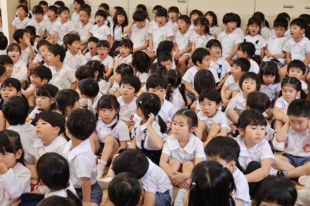 最初に学年ごとにお歌を歌いました。