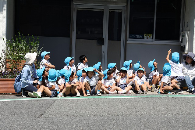 交代で3か所の巣を見ましたが、その間に子つばめがうんちをする姿が見られたクラスがあったり、親つばめが口から何か落とすのが見れたりとクラスによってつばめの色々な様子を見ることができました。