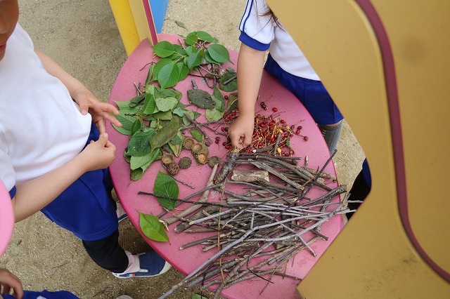 すべり台を何度も滑ったり、木の枝や実を集めてお店屋さんごっこして遊んだり・・