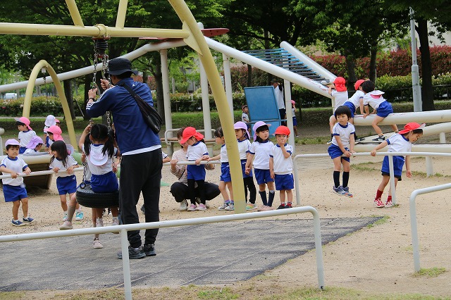 公園に着き、先生にお約束を聞いたら早速遊具へ走って行きました。