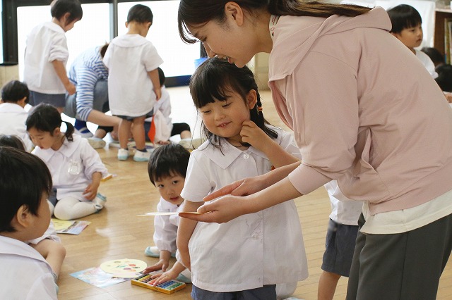 入園当初は、おうちの人と離れたくなくて泣いている子も多くいましたが、だんだんと泣く子も減り先生と一緒に遊んだり、自分で好きな遊びを見つけたりすることができるようになってきました。
