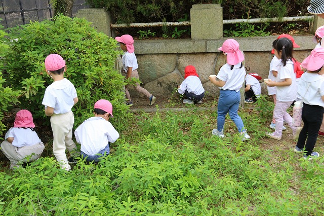 園庭で一生懸命にだんごむしを探す姿が多くみられるようになってきました。