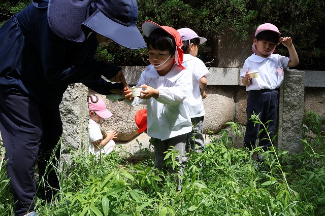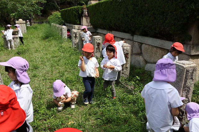 最初は、どこを探したらよいのか分からない子もいましたが、だんだんと慣れてきて葉っぱの下や草の中など、たくさんのだんごむしが見つけられるようになってきました。