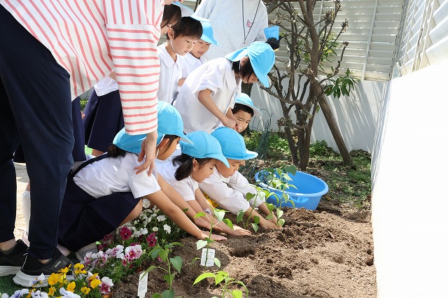 それぞれの苗をお母さん先生と一緒に植えてくれました。