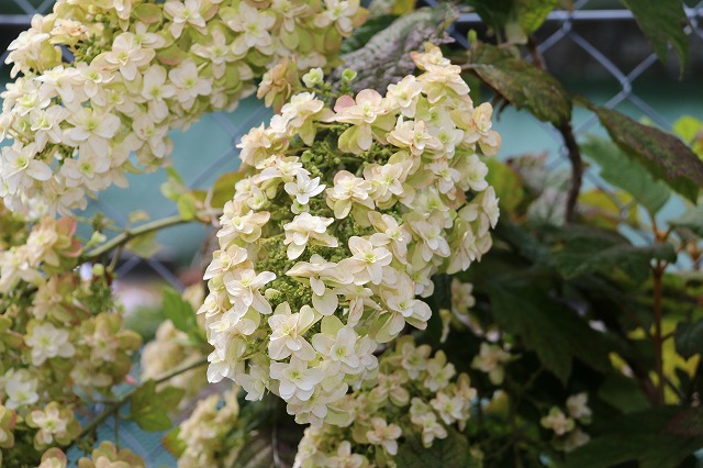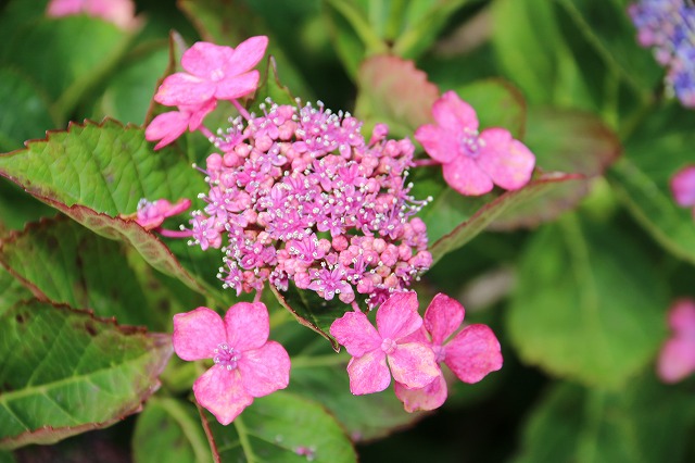 西洋アジサイ、真ん中が小さい粒々のガクアジサイも咲いていました。