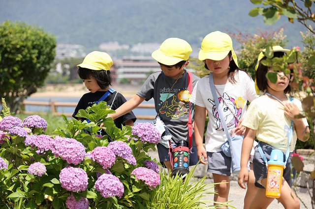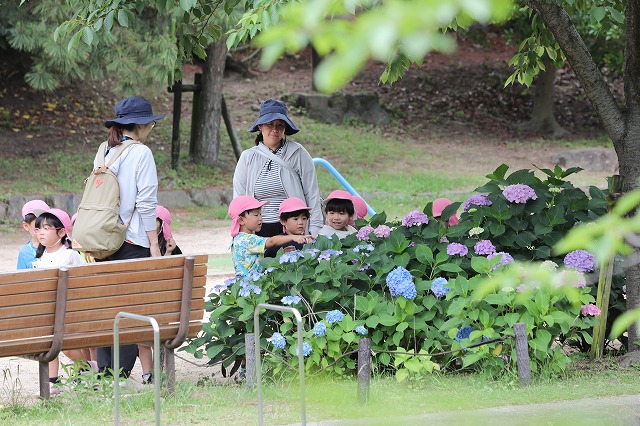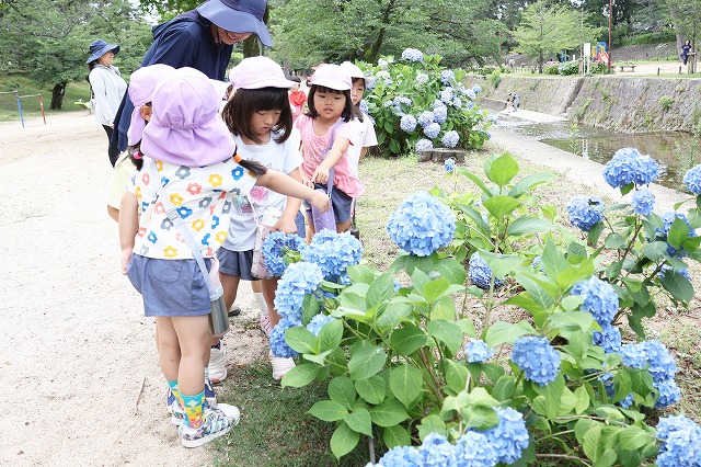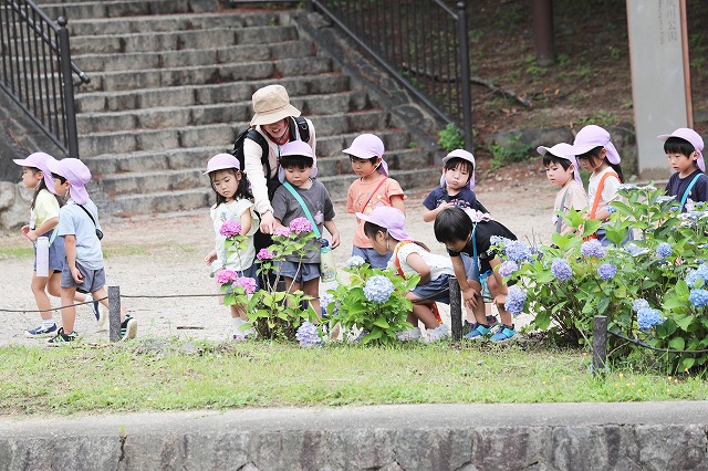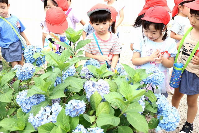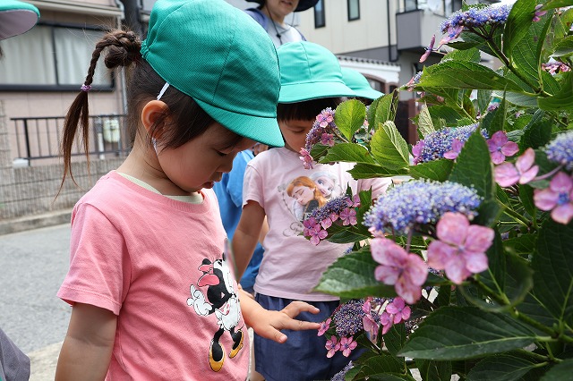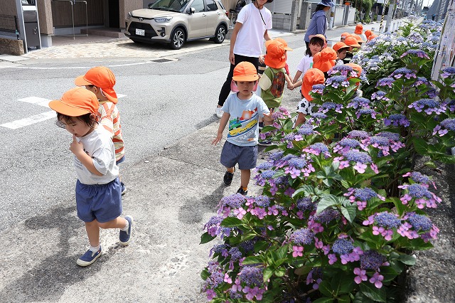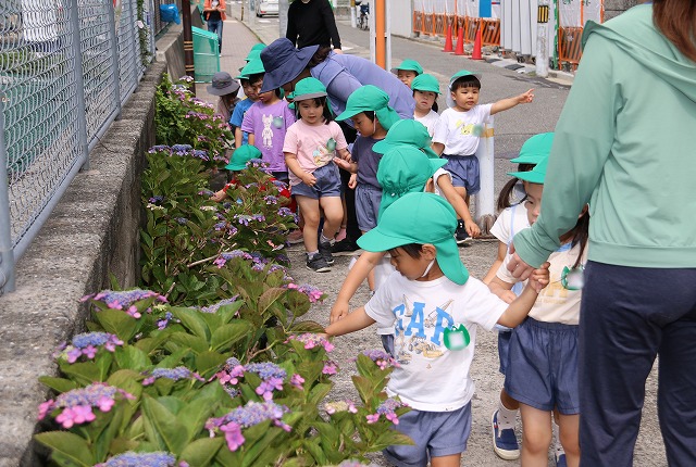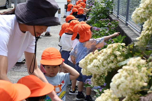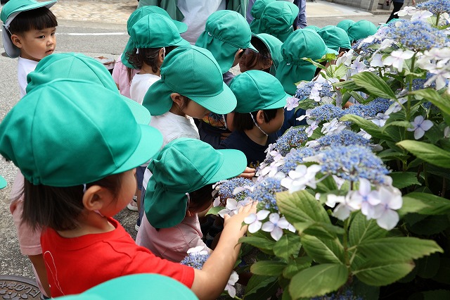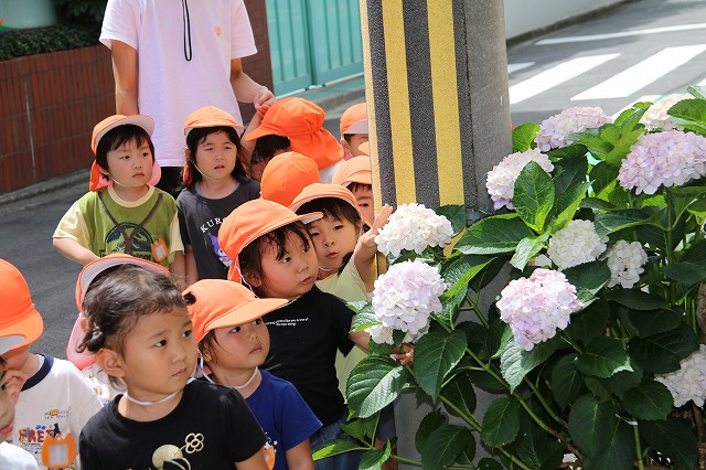 6月13日(金)年中組さんに続いて年少組さんもあじさいを見に行ってきました。