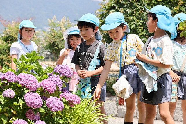 バスの中から外の景色を覗きながら「道にもアジサイ咲いてる~」とお話しながら帰ってきました。きれいなアジサイたくさん見れて楽しかったね!!