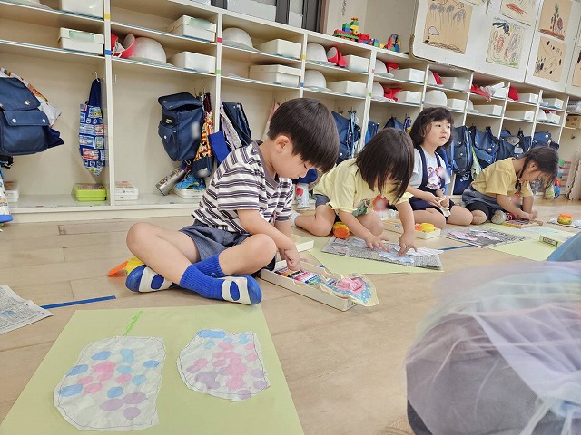 そして、幼稚園に帰ってきてからあじさいの製作をおこないました。