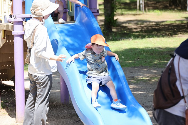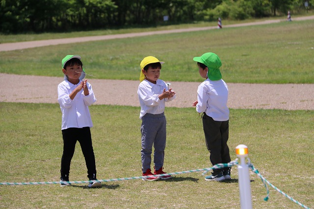 食べた後は、また竹とんぼで遊んだり芝生の上を走り回ったりして思い切り遊んで帰ってきました。
