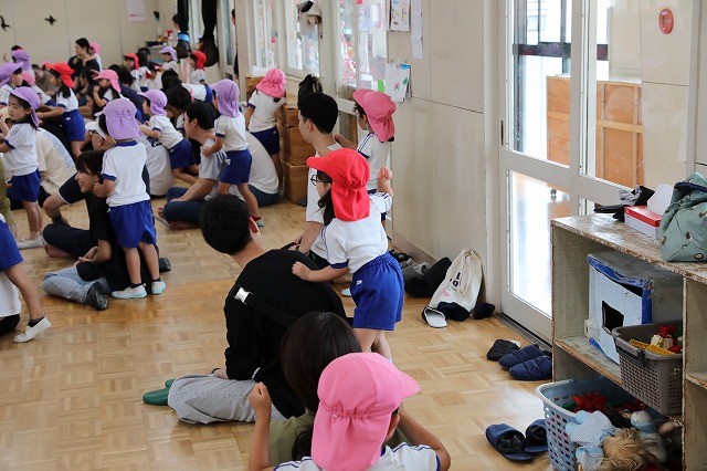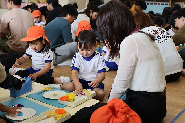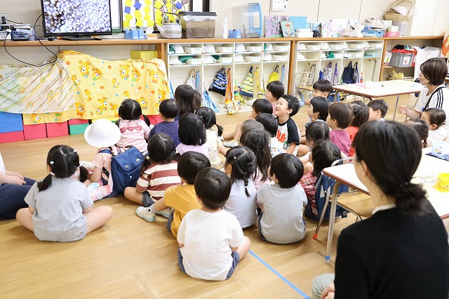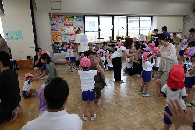 幼稚園のお部屋にお家の人が来てくれて、子ども達みんな嬉しそう。