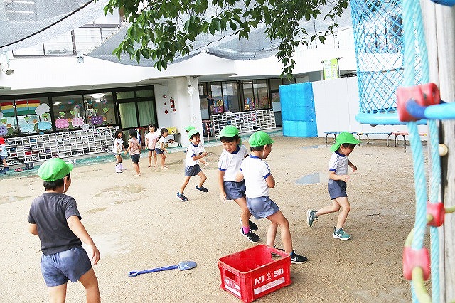 9日から梅雨に入り、園庭は子ども達にとって絶好の環境に!!
