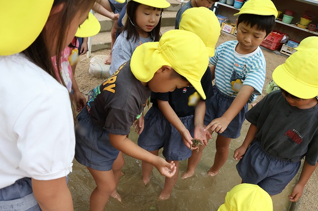 さくら組、きく組、すみれ組と順番に自分の番が来るのを待ちながら、お友達がどうやって取っておるのかな~??とみんな興味津々で収穫する様子を見ていました。