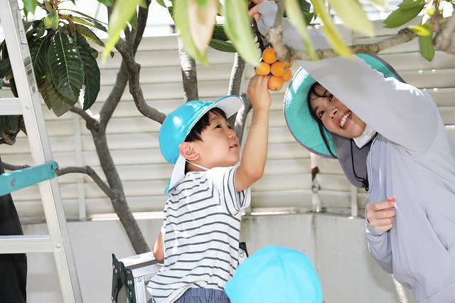 6月6日(金)幼稚園のお庭のびわを年長組さんが収穫しました。