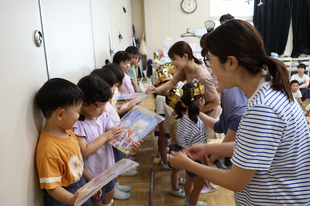 みんなの前でお名前や大きくなったら何になりたいか、発表しました。「パパにみたいになりたい」「シナモンロール」「ユニバと万博で働く人になりたい」「サッカー選手」などなど夢を教えてくれました。
