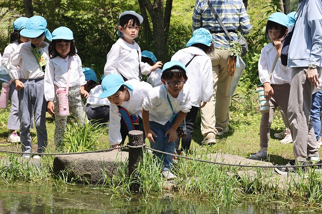 森の中には池があって、池の周りでヤゴやオタマジャクシなども見せてもらいました。