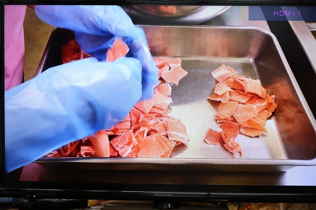 せっかくなので、給食室でどんなふうに給食が作られていくのか、見てもらいたいと思いビデオ撮影して子ども達に見てもらうことにしました。