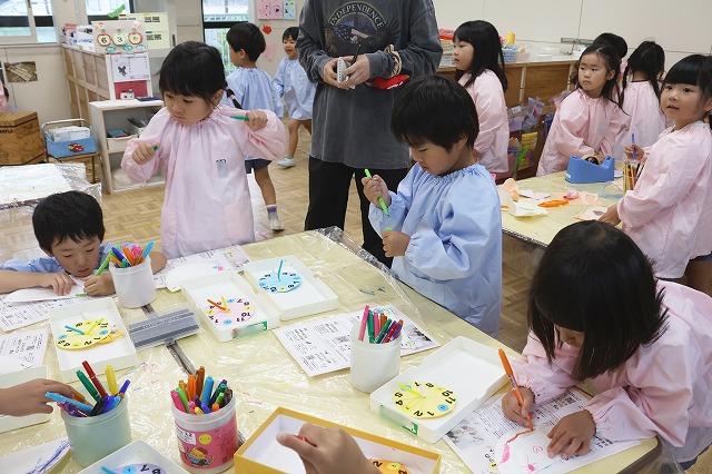幼稚園では、時の記念日に向けて時計の製作をおこないました。