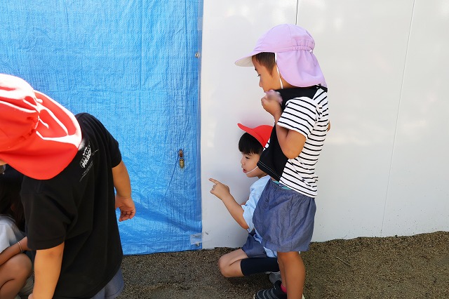 また、さくら組さんのお友だちも羽化前の蝉の幼虫を見つけてくれました。