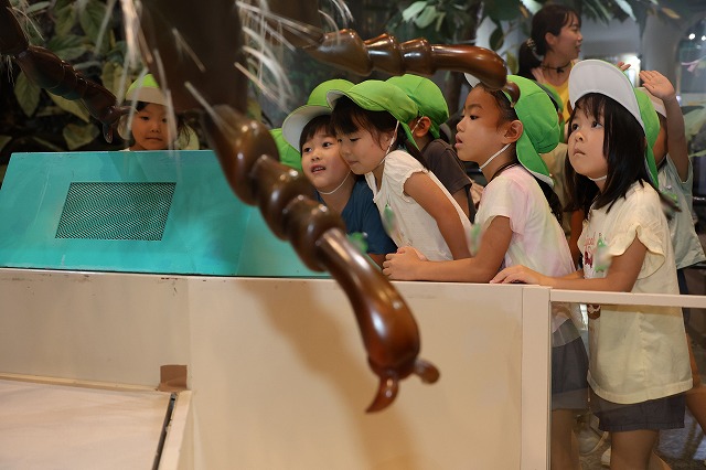 昆虫館では、虫たちの標本を見たり、ちょうちょがたくさん飛び交う温室に入ったり、大きな蜂や虫のオブジェに大喜びしたりと、虫が好きな子はもちろん虫が苦手な子も楽しみました。