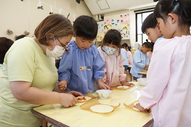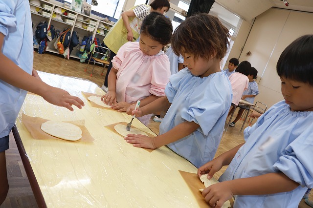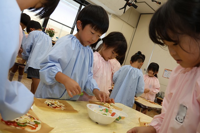 7/10(木)年長組さんがピザを作りました。