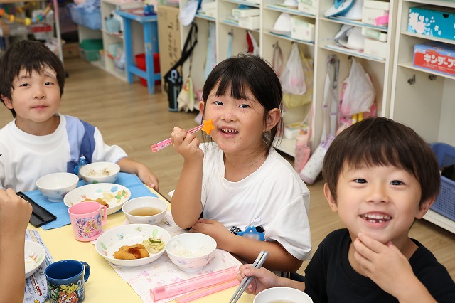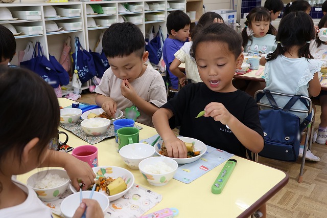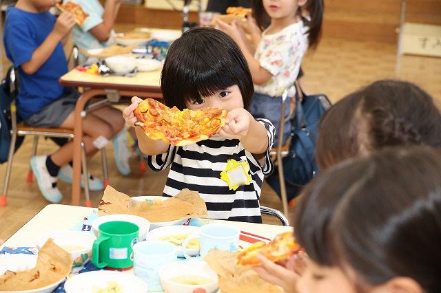 みんないつもの給食以上においしかったようでモリモリ食べていました。