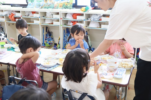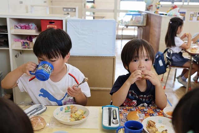 時には、お楽しみの給食の時間も過ごしました。