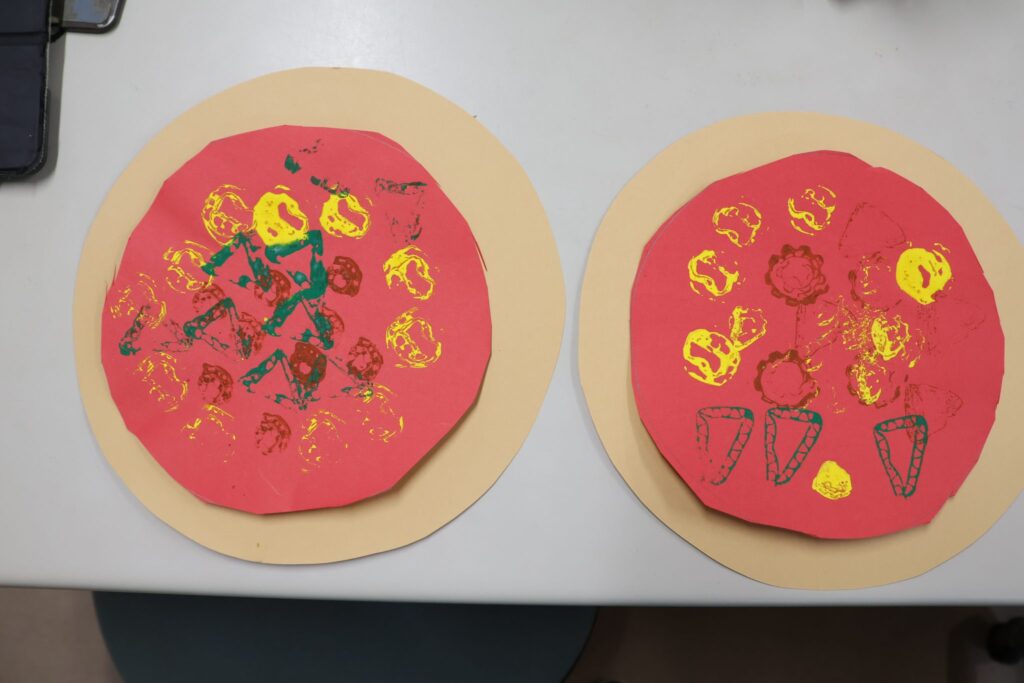 ピーマンやトマト、トウモロコシを好きなだけスタンピングしていきます。スタンピングが楽しくてどんどん具沢山に!
