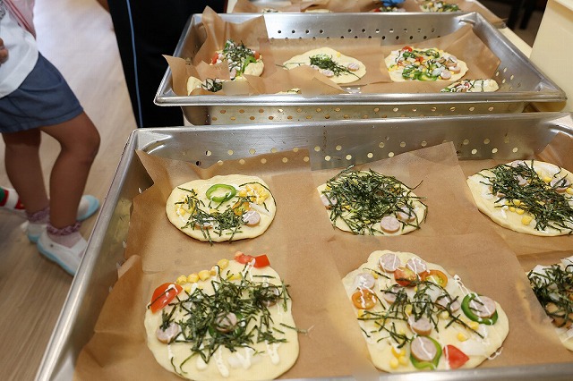 子どもたち、それぞれが思い思いに作ったオリジナルピザは