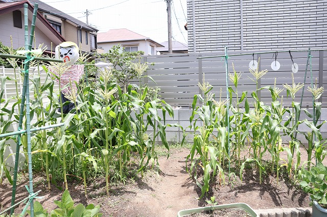 特に1回目の収穫の前にカラスにたくさんのとうもろこしを取られてしまったすみれ組さんはCDの数を増やしたり、新しくかかしを作ったりしてカラスに取られないようにしっかり対策をして楽しみにしていました。