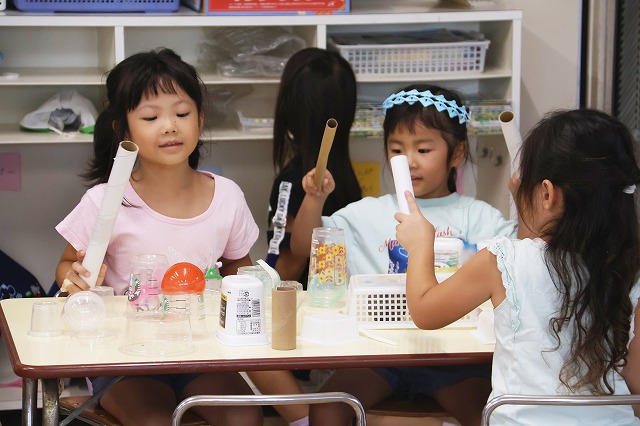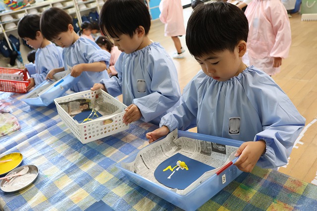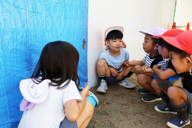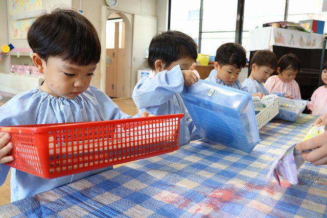 お友達と一緒に何かを作ったり、遊んだりすることが楽しくなってきた年少さん。自然とお互い話しかけたり、見たりして楽しんでいました