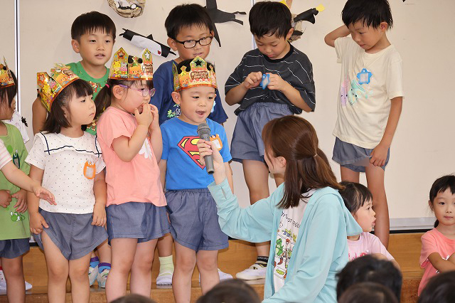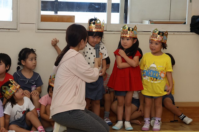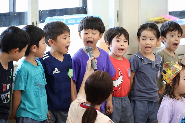 みんなにお祝いのお歌を歌ってもらったり、先生からプレゼントをもらったりと嬉しそうでした。インタビューでは少し緊張する様子もありましたが、将来なりたいものをみんなに話してくれました♪