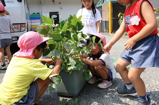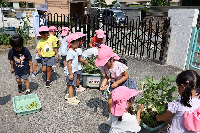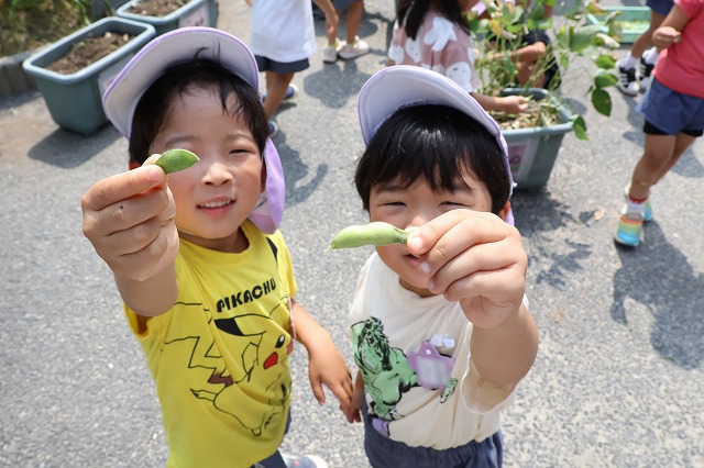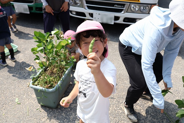 そして、先日とうもろこしをもらった大きい組さんにも枝豆をお返しにあげることにしました。