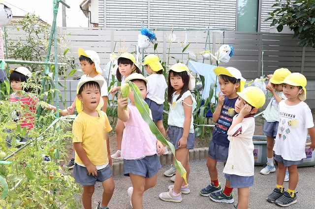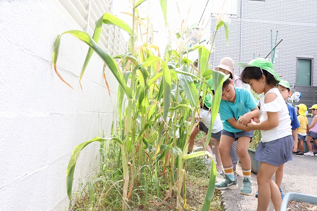 「とうもろこし大きくなっていたよ!」と年中組さんのお友達も先生に知らせてくれたようです。
