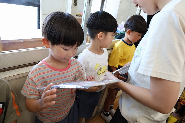 そして、考えた結果・・自分たちは前回食べたので、今回は一緒に水やりをしたりしてくれた小さい組さんにあげることにしました。