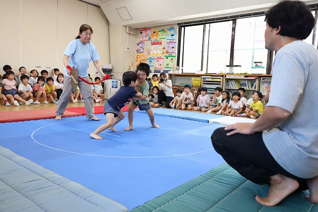 お誕生日会の後にはおすもう大会が行われました!