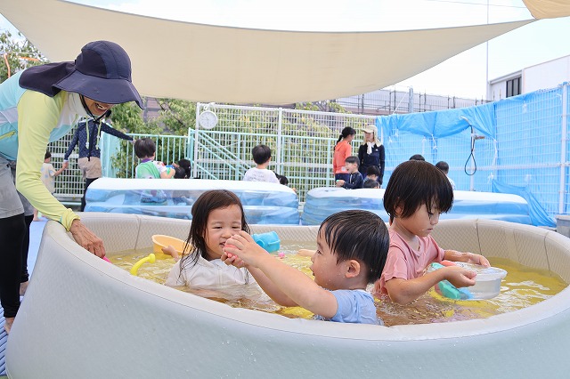 夏休み始め方行ったプール遊びは、多い週で3回入りました。やっぱり子ども達はお水が大好き!! 毎回、大はしゃぎで入っていました。