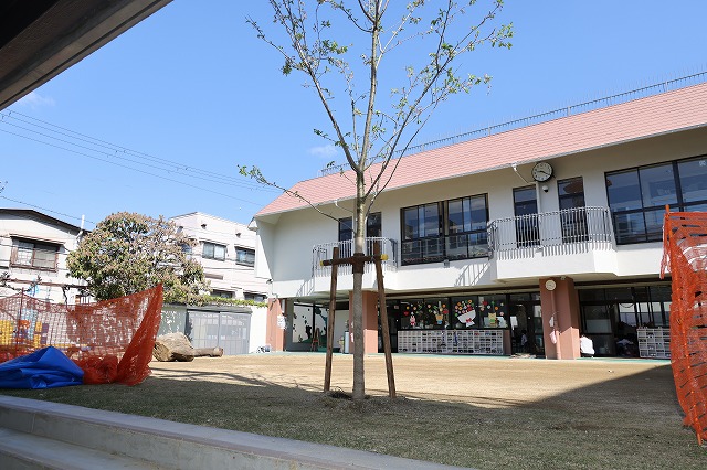そして、新しい園庭には前の園庭のように、枇杷やすもも・ブルーベリーなど・・・また実のなる木も植えることができました。まだまだ細くて背も低いので、みんなが食べられるぐらいたくさんの実がなるのは、何年か先になりそうですが、大切に育てていきたいと思います。
