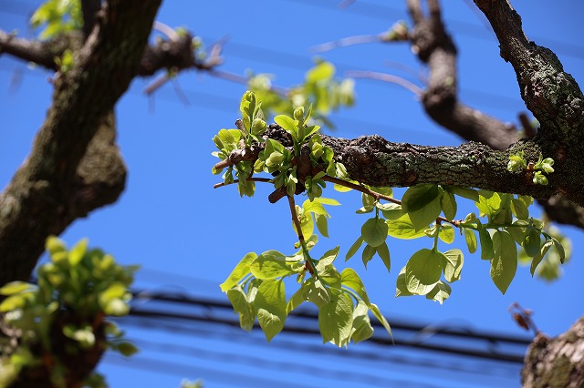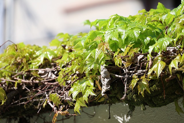 幼稚園に元々ある柿の木や門の上に伸びているつたの葉も綺麗な新芽が芽吹いています。