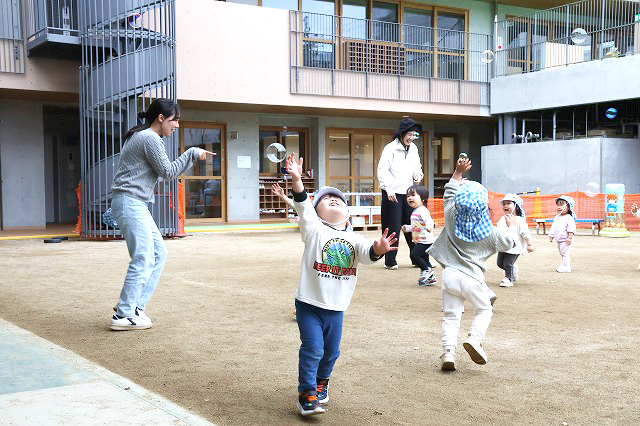先日ぶどう組さんは、シャボン玉遊びもしましたよ。たくさんのシャボン玉を追いかけたり、掴もうとしたり、とっても嬉しそうな笑顔が見られました!