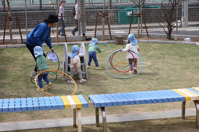 まだ始まったばかりの園生活。先生と一緒にいることで安心感が持てるように・・・日々保育を進めていきたいと思います。
