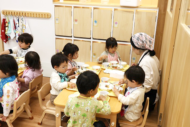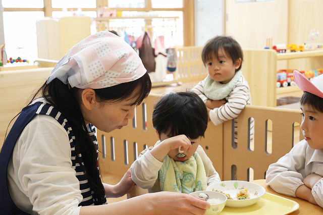 給食も自分でスプーンを持って食べる子もいれば、先生に食べさせてもらいながらもちゃんと好き嫌いの意思表示をしてくれたり・・・最初ほとんど食べなかった子もまだ数日ではありますが、毎日食べていくうちに少しずつ食べられるようになってきています。