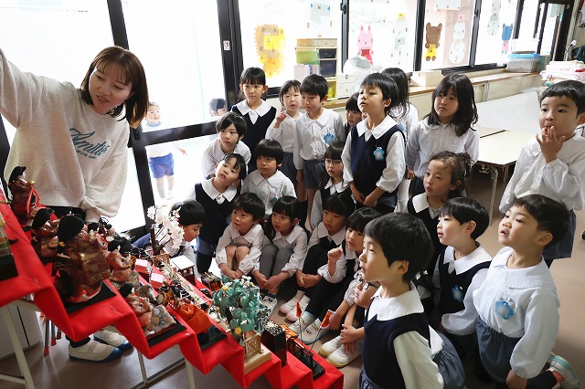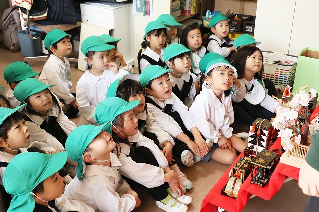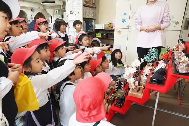 3月3日のひな祭りにむけて、幼稚園でもおひな飾りを2月の下旬に出しました。