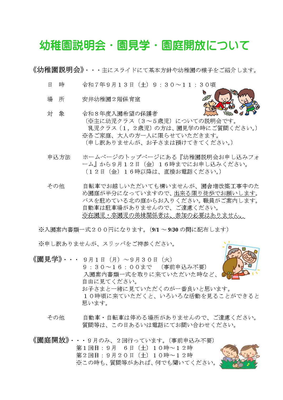 〇月〇日( )当園において幼稚園説明会が 行われます。